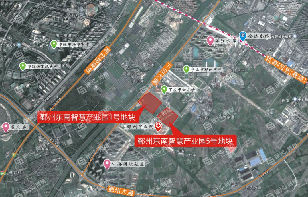 鄞州东南智慧产业园1号地块、5号地块坐落于下应南路与萱荫路交叉口。其中1号地块(住宅用地)出让面积约47692平米,可建面积达10.5万方,容积率1.0-2.2,挂牌起价楼面地价13930元/㎡,限价20750元/㎡,要求内部建设4042㎡的12班幼儿园一所,建成后需无偿移交政府相关部门。