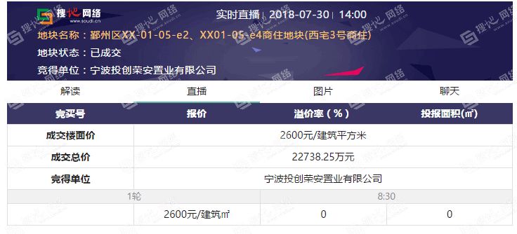 本案地块没有硬性规划要求,其起价也相对理性,于下午场率先由荣安以底价2600元/㎡成功斩获,折合总价约2.27亿。