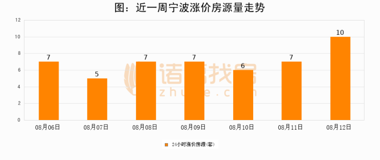 根据诸葛找房数据显示,宁波24小时涨价房源量为10套,较08月11日增加3套,环比上涨42.9%。与此同时,涨价房源占比小幅扩大,业主信心有所提升。