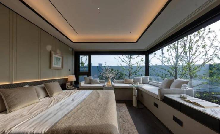 2# 号楼的边套主卧户型配置 270° 环幕飘窗,不仅延伸空间尺度,更将水岸、园景 “框” 成私藏壁画。晨间,阳光透过飘窗铺满床榻;深夜,枕着河风与月光入眠,这是专属建面约 165㎡的 “观景特权”