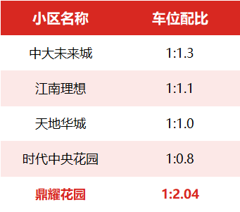 据kb君粗略统计,项目周边小区车位配比约为0.8-1.3。对比之下,鼎耀花园的超高车位比,全面彰显高品质住区的舒适与便利。