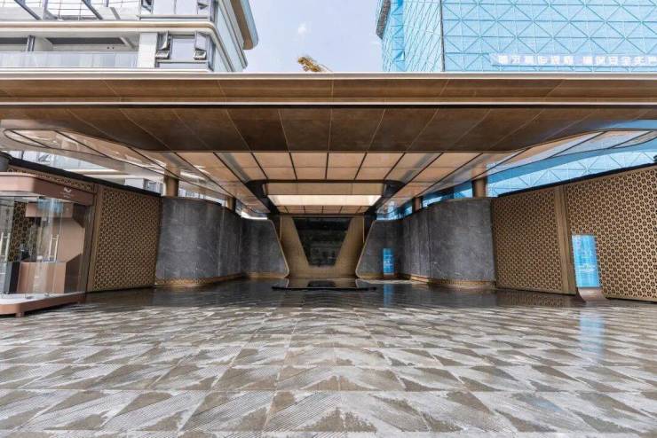 地面则提炼孔雀羽毛元素,打造出项目专属的羽尚纹定制铺装,寓意美好顺遂,目之所及的每一处细节,都藏着不张扬的奢华。
