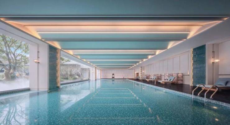 无界全景恒温泳池,一踏入就有度假酒店般的松弛感;