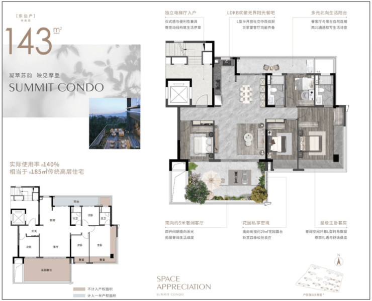 得房率:部分户型可达130%(含赠送空中庭院等)
