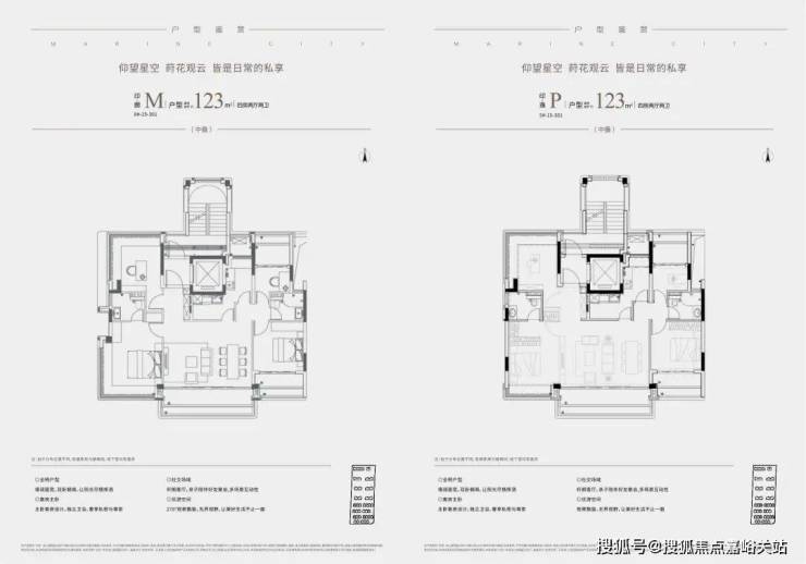 而中叠(建面约123㎡)则集便利与尺度于一身:不仅配备独立电梯厅,更以约13.4米南向面宽、约6米宽厅及南北双270°转角飘窗,营造出宽幕视野与通透空间,体感媲美整层大平层,实得率几近“满格”。