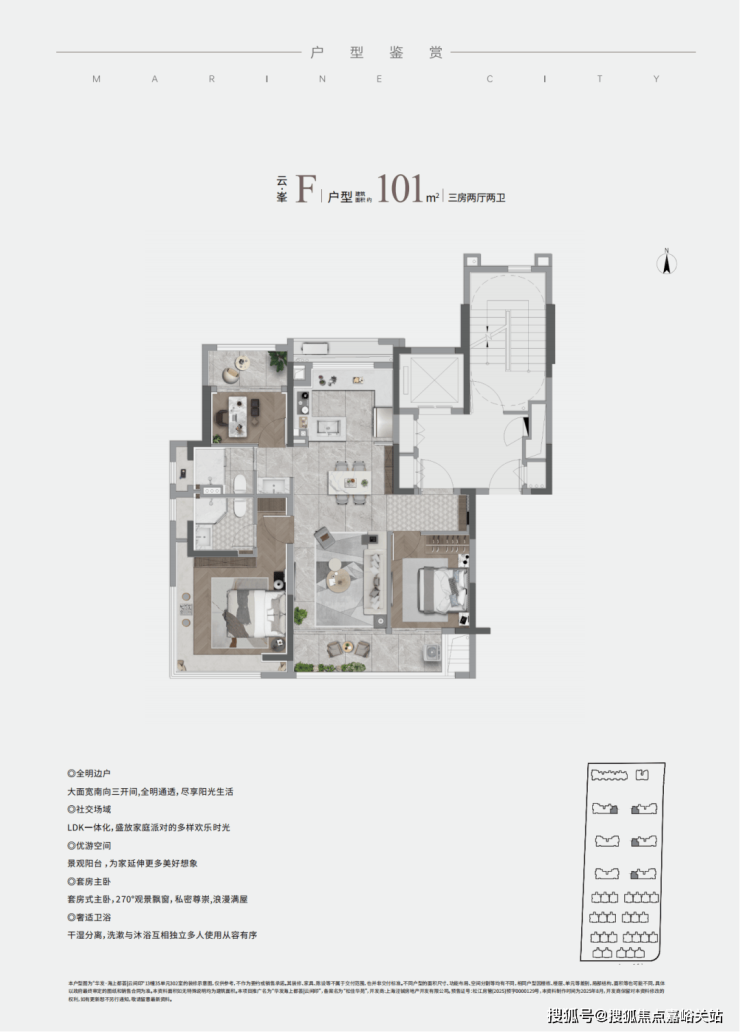 项目建面约101㎡的南厅边套户型,阳台面积接近12㎡,还有超过8㎡的飘窗,再加上设备平台等面积,房间的实得率比起松江目前在售待售的所有项目都要高!这不是绝版是什么?