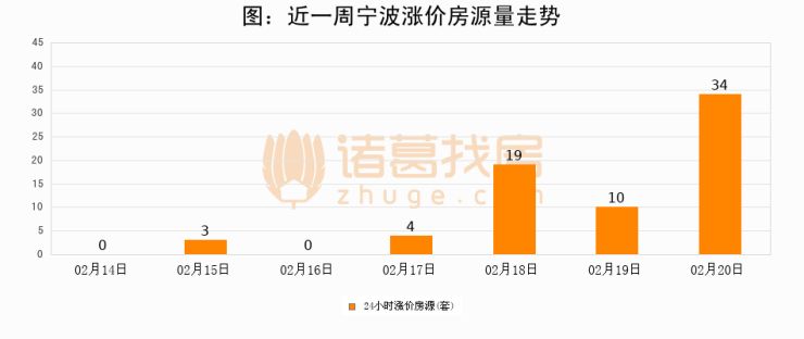 根据诸葛找房数据显示,宁波24小时涨价房源量为34套,较02月19日增加24套,环比上涨240%。与此同时,涨价房源占比小幅扩大,业主信心有所提升。