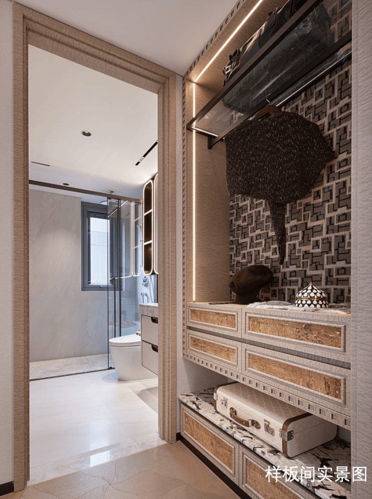 厨房配备方太20件套集成洗净中心,更于主卫空间首创“闵行美妆四件套”:科勒美妆龙头、美妆镜柜、美妆冰箱,辅以“顶+面双补光照明”,以专属的细节设计,礼遇居者。
