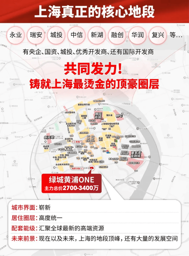 而相比这些区域,地段更加核心、圈层更加统一、资源更高能级的黄浦区中部,则将是20万/㎡+的市场。