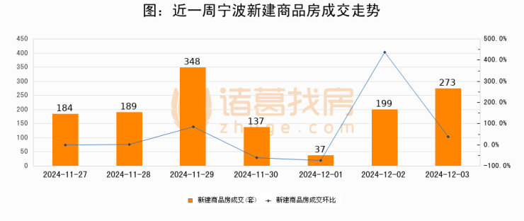 【宁波成交日报】12月03日新房成交273套;涨价房源5套