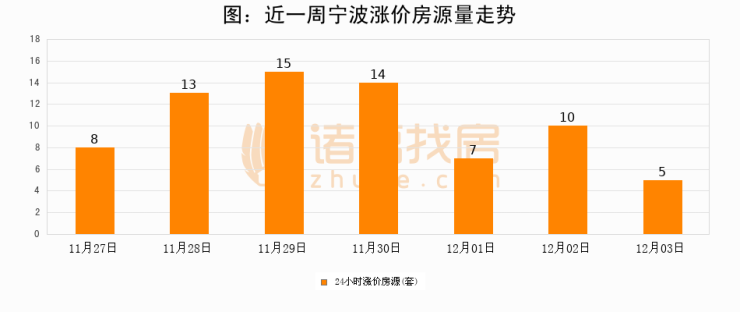 根据诸葛找房数据显示,宁波24小时涨价房源量为5套,较12月02日减少5套,环比下降50%。与此同时,涨价房源占比小幅回落,对于购房者来说是一个入市窗口期,购房者可抓住时机入市。