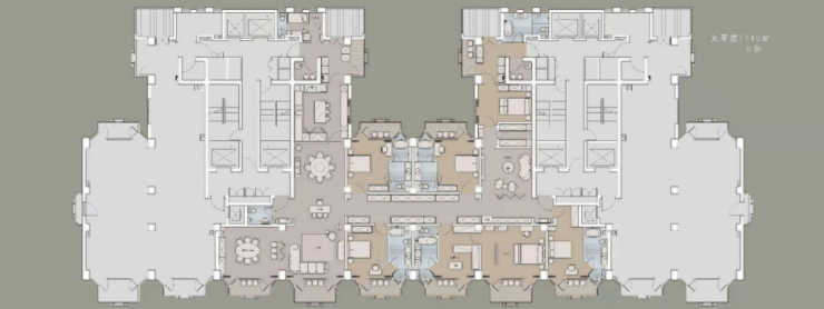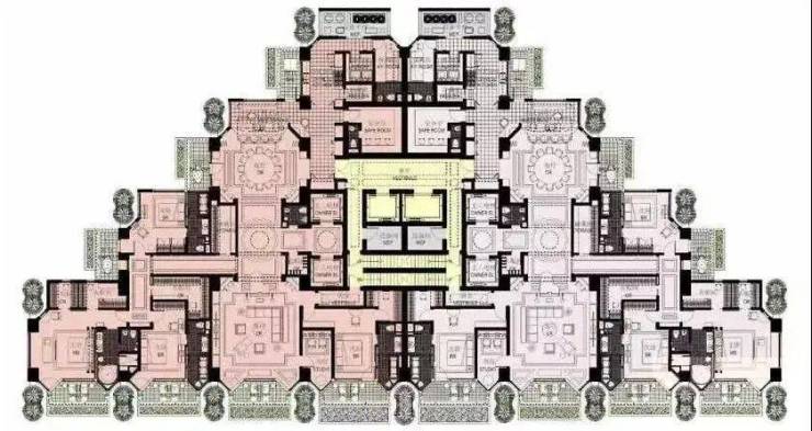 以2号楼为例 总高39层;实际住宅36层;1栋楼分2个单元 每个单元2梯2户;每两个楼层2个单元共6户大宅,370㎡平层(两个楼层2个单元共4套),680㎡复式(两个楼层2个单元共2套)另传最终交付时候可能会有户型定制