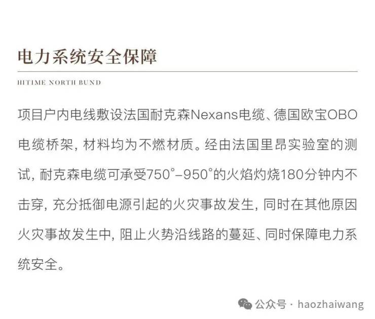 采用国际一线品牌,如嘉格纳、劳芬、当代等,配备全屋智能系统、安全屋、紫铜给水系统(与和平饭店同款)