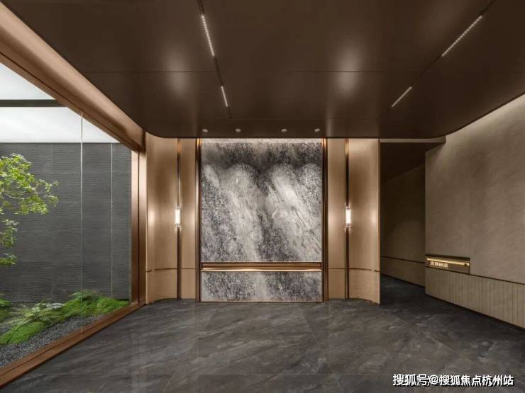 归家大堂 延续了书卷气息以及奢而不俗的活力感,搭配都会新贵白金色调,既有书香之韵,又有人居宅院的气质。