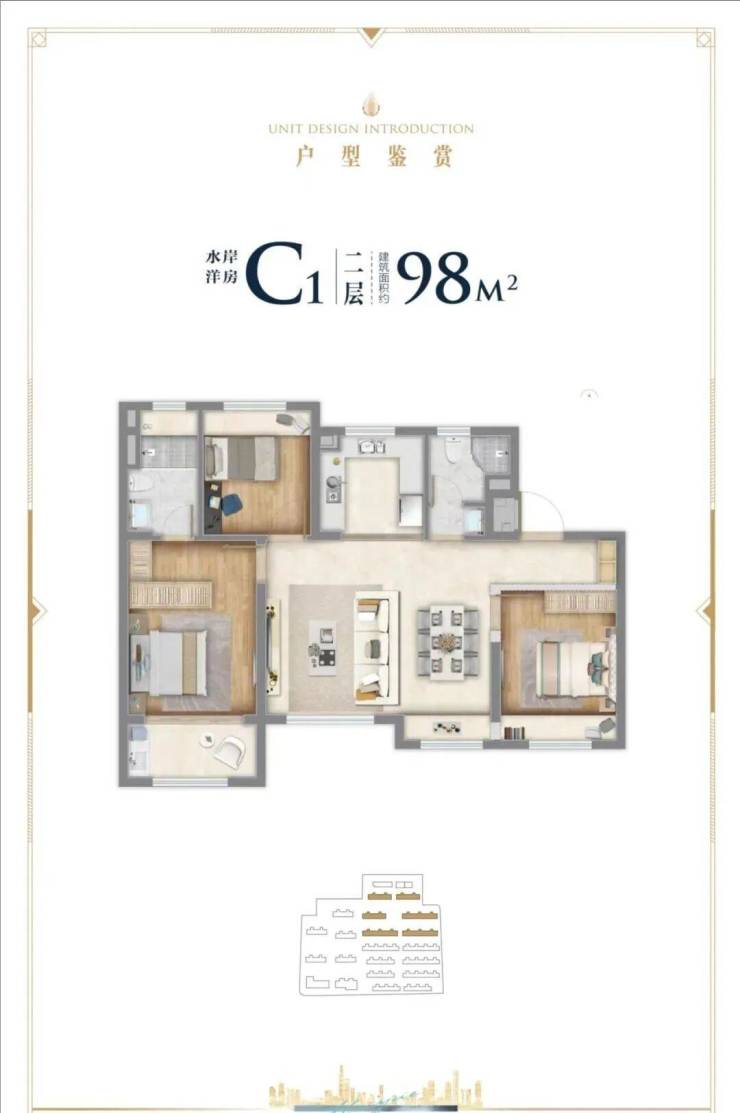 涵盖三大类产品,包括:建筑面积约88-102㎡臻装高层、98-130㎡水岸洋房与140-145㎡ 悦景叠加。