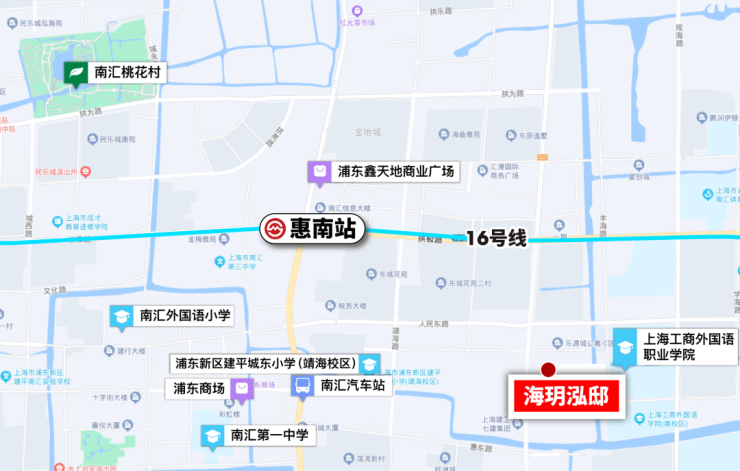 距离地铁16号线惠南站约1.5公里,步行约20分钟,需依赖公交或短驳接驳