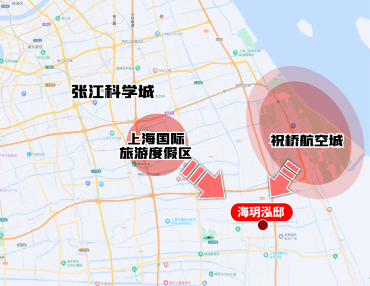 海玥泓邸的城市站位非常不错,周边三大重量级规划加持,东侧是祝桥航空城,向北是国际旅游度假区,不远处还有张江科学城。