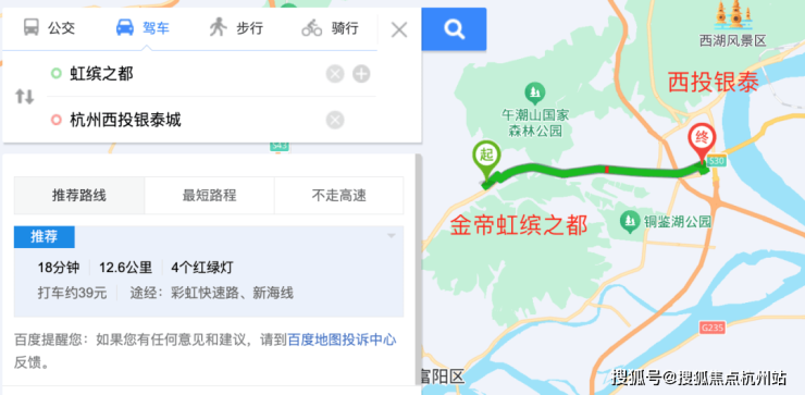 百度地图测算自驾至之江西投银泰城约18min: