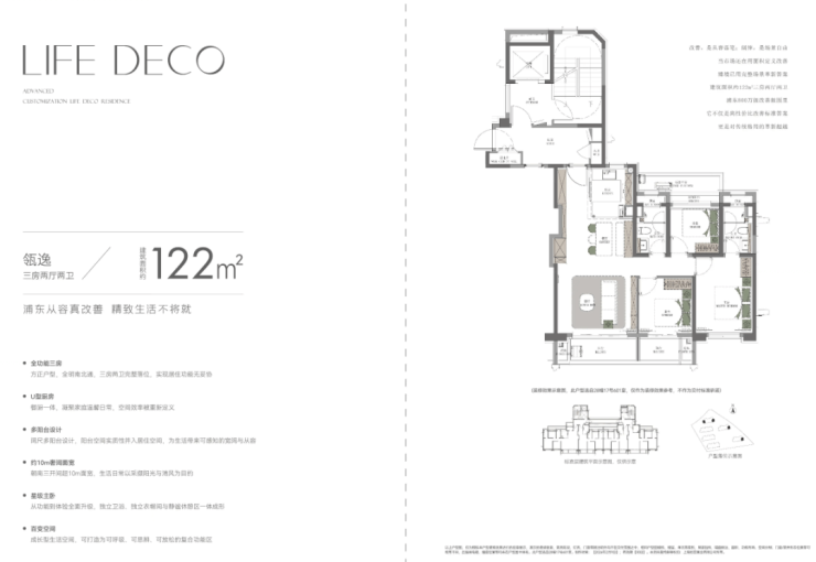 建面约122㎡的三房,同样遵循这个逻辑。在这个面积段做出三房,还附加三阳台、飘窗、可创变空间,尺度感和舒适度都相当在线。
