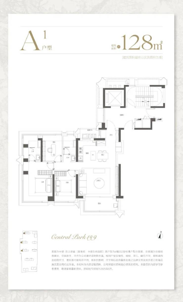 128㎡三房:约270°采光,主卧无柱转角飘窗