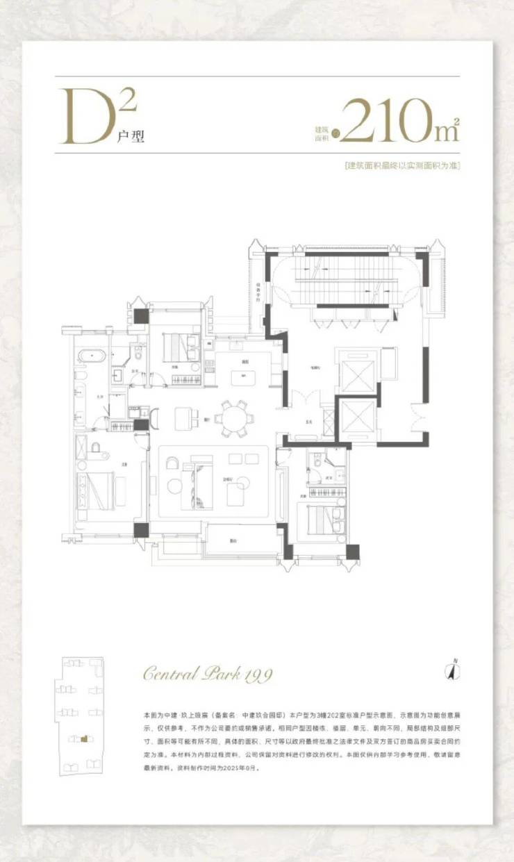 210㎡四房:边厅设计,东南双向采光,可俯瞰中央庭院与大宁公园