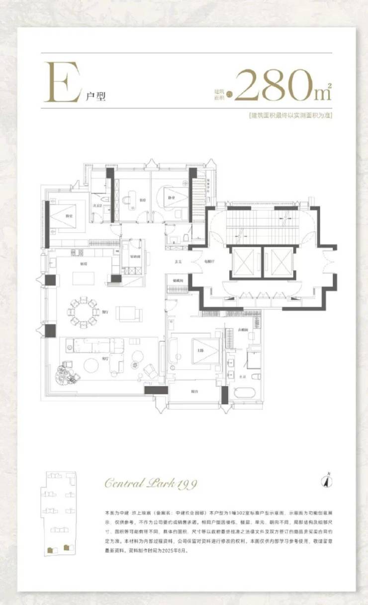 280㎡四房:边厅设计,大横厅尺度双向采光,可俯瞰中央庭院与大宁公园