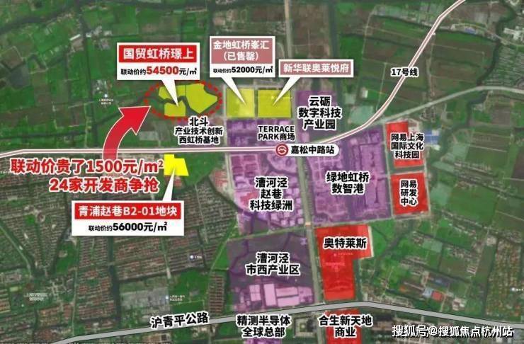 第一,嘉松中路站土拍已三连涨,最新联动价来到56000元/㎡,那国贸虹桥璟上性价比凸显。