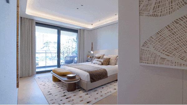 南向约9.3米超大面宽,搭配约3.3米的朗阔层高,营造出恢宏通透的空间尺度感。客厅与南向阳台完全打通,延伸出一片融于自然的阳光厅堂,推窗即见私家庭院,实现室内外场景的自由切换,演绎真正的墅居生活意境。