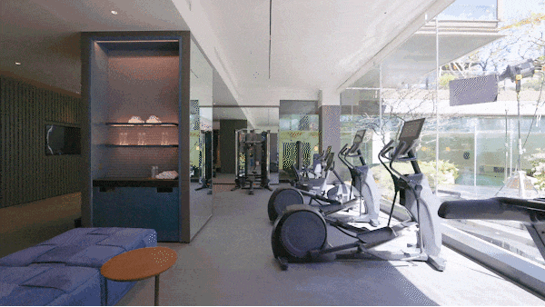 自然的簇拥,才能给予身心放松的自由。游泳池、健身房等运动空间的设计中,大面积落地玻璃消弭了室内外的界限,让自然与人无间交融。在这里,游泳、运动、社交,每一种场景都能让人在“繁华与静谧”“忙碌与松弛”间找到平衡,在为高质量圈层社交提供多重选择的同时,也为居者提供丰富的互动空间。