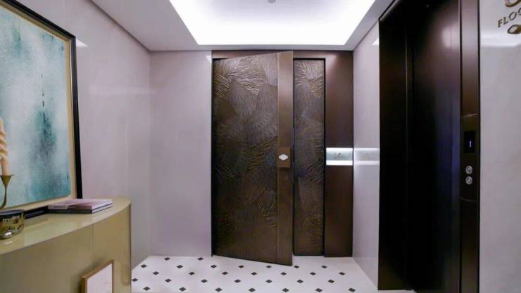 高端铸铝门与飞利浦六合一智能门锁安全便捷,并为每一户定制门牌号,青玉石材,配置内发光的白玉底座,更彰显项目品质和审美。