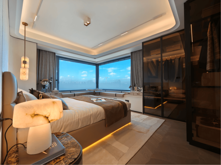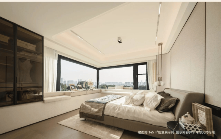 建面约 145㎡户型以 270°转角飘寄搭配超高窗墙比解锁超广角视野,将无限景致“拉”至眼前。城市的璀璨天际、静逸的河景、灵动的山水庭园,点亮窗前,让生活的每一刻都浸润在自然与开阔之中。