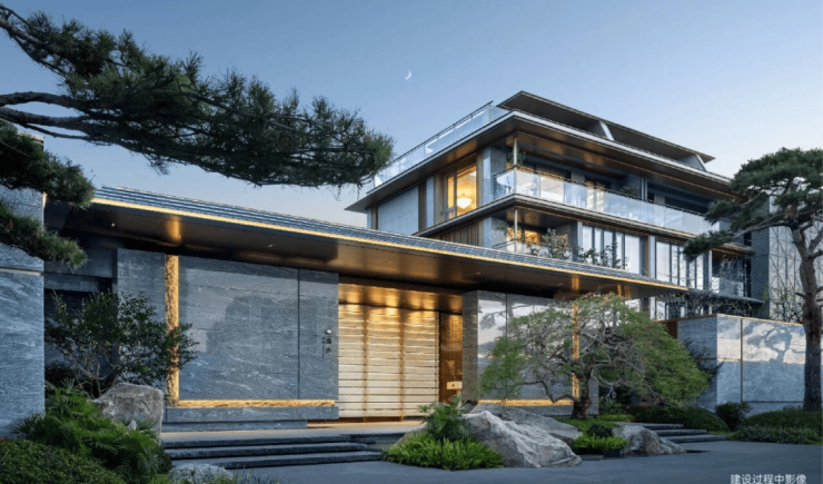 产品稀缺:容积率仅2.0,打造“现代东方美学”建筑风格,立面采用石材、铝板、玻璃材质。