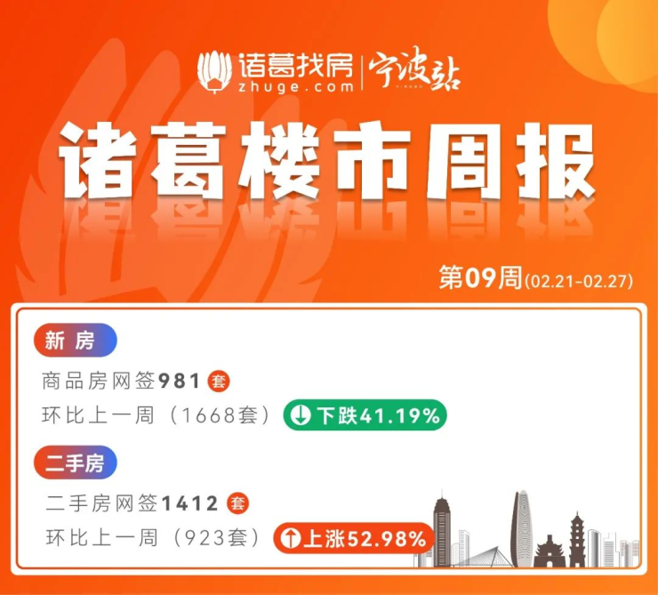 本周宁波大市共网签二手房1412套 ,环比上一周(923套)上涨52.98%。