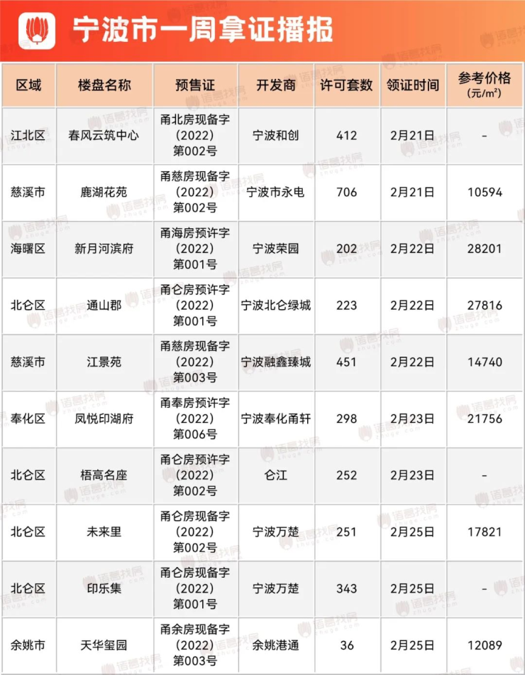 本周宁波大市共10个楼盘取得许可证,入市房源共计3174套,其中市六区共计1981套 。