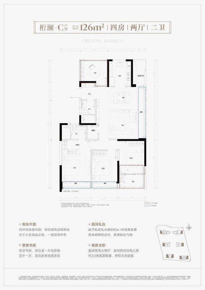 如果追求视野和仪式感,该户型完美契合。四开间朝南的王者格局,主卧配约3.5米飘窗,叠加约6.1米观景宽幕,你的家就像“运河第一排观景座”,运河船只往来间,镌刻下永不落幕的风景。
