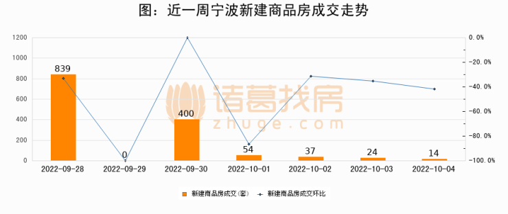 根据宁波市房产市场管理中心数据显示,2022年10月04日宁波新建商品房成交14套,较昨日减少10套,环比下降41.7%