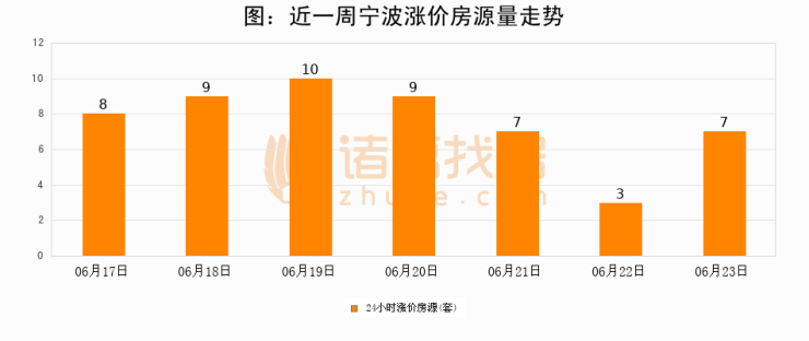 根据诸葛找房数据显示,宁波24小时涨价房源量为7套,较06月22日增加4套,环比上涨133.3%。与此同时,涨价房源占比小幅扩大,业主信心有所提升。