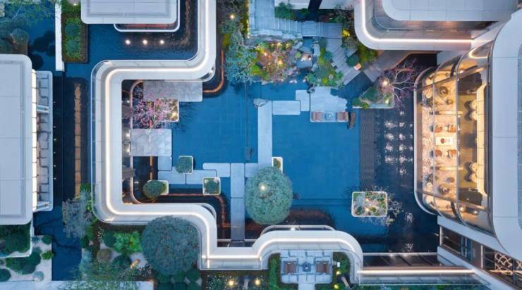 下叠地下拓展空间层高最高约6.6米,双采光井,全明通透,夹层与室外连通,还带多个下沉式庭院。