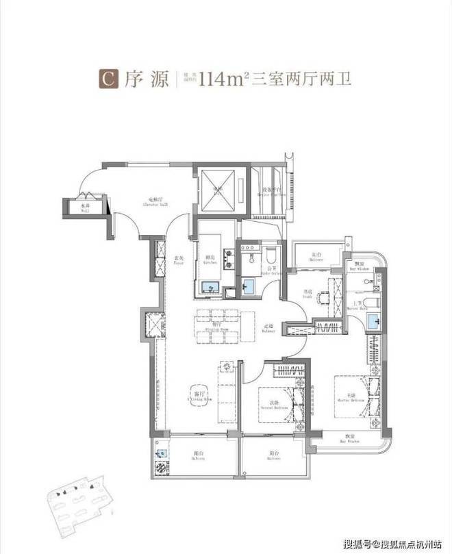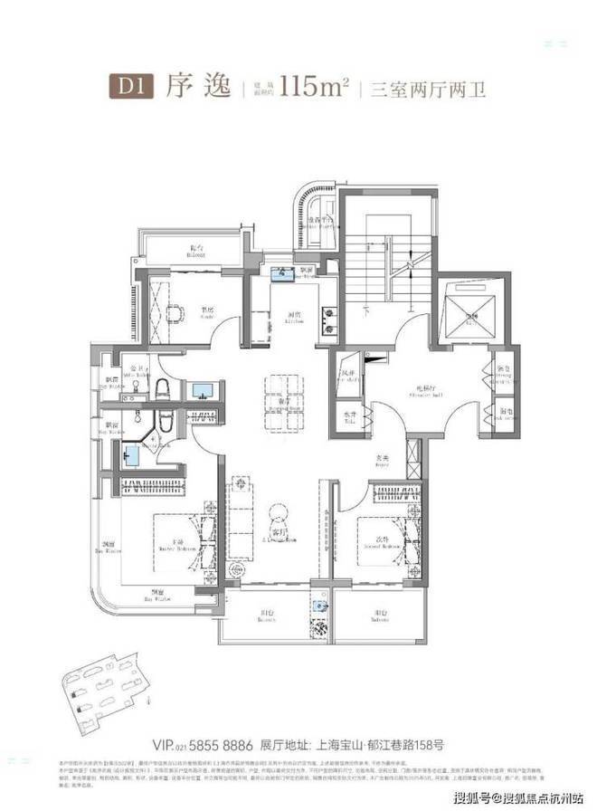 其中建面约115㎡鲲鹏阁三房户型是上海此前未见的全新王炸级产品