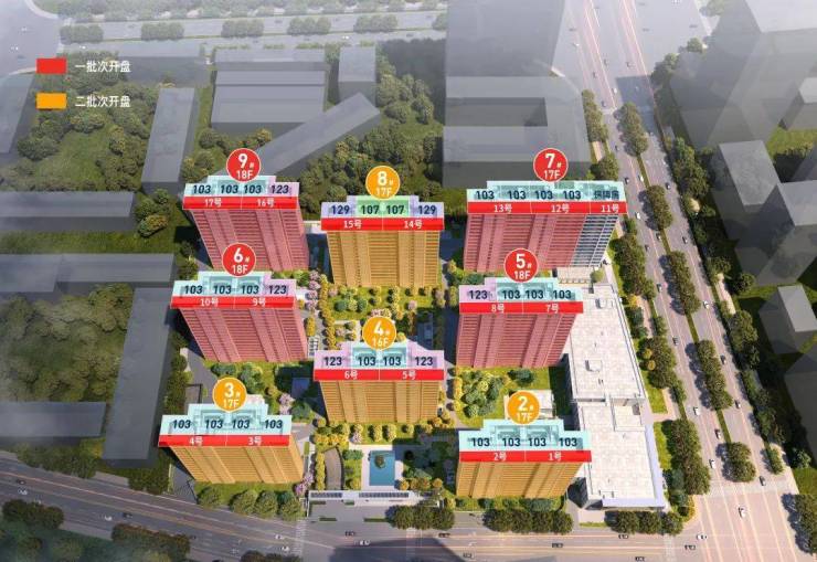 建筑规划:3层邻里中心1栋、16层住宅1栋、17层住宅4栋、18层住宅3栋