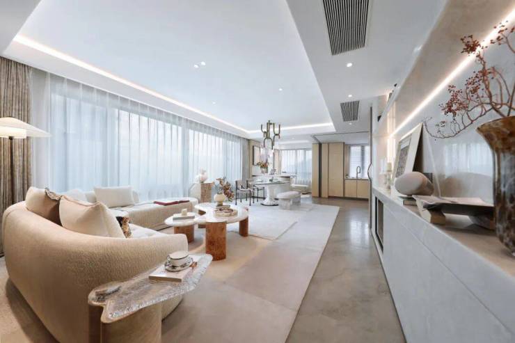 杭州英冠绿城春来晴翠,选择用宝格丽的美学为杭州作答:不拘泥于用奢石与金属标榜身份,而借光的折射与材质的温度,在TOD的繁华节点上,为都市青年织补出一处可以随时松绑的日常国度,将“珠宝美学”转译为可触摸的空间日常。