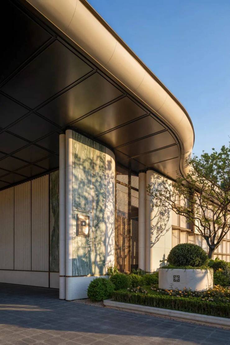立面设计摒弃了繁复的装饰语言,转而以横向延展的线条勾勒建筑的轻盈姿态,以纵向节奏的划分建立视觉秩序。