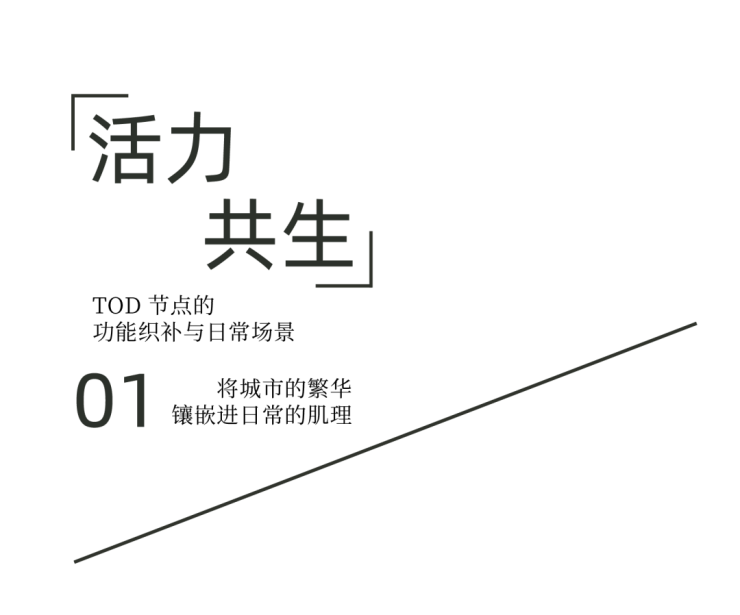 在滨江江南科学城板块,地铁站(在建)与公交站点构成的双站点围合格局,为社区注入了天然的交通优势与人群活力。项目以此为基底,将北侧商办集群、南部社区配套、生活馆、架空层泛会所织补进社区肌理, 形成南北双向功能锚固、内外联动的复合活力体系。