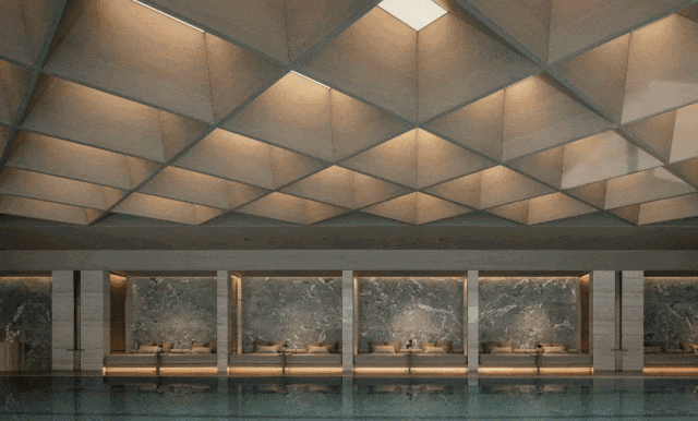 而时代之城不仅配置了会所,更是配置了约2000㎡的超大体量会所, 泳池、健身房、儿童乐园、下沉式庭院一应俱全,在这里可运动,亦可待客、闲话家常,既实用又超有排面。