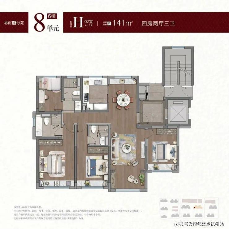 约188㎡四房:作为项目的“旗舰户型”,188㎡四房三卫采用十字中轴动线,三卧朝南+双套房设计,满足多代家庭对隐私与阳光的双重需求。