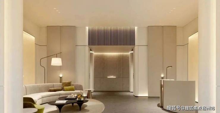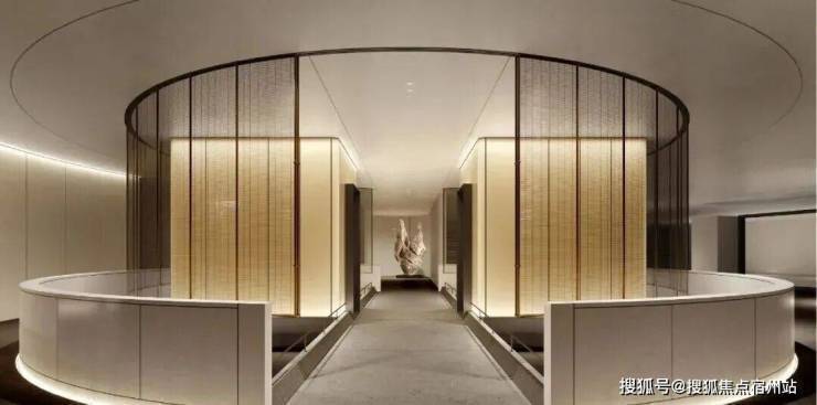 比起中规中矩的直线,弧形施工工艺更复杂、造价更高,却多了几分灵动轻盈!这种弧形的元素不只是在样板间里,在售楼处也能经常看到,比如电梯厅。
