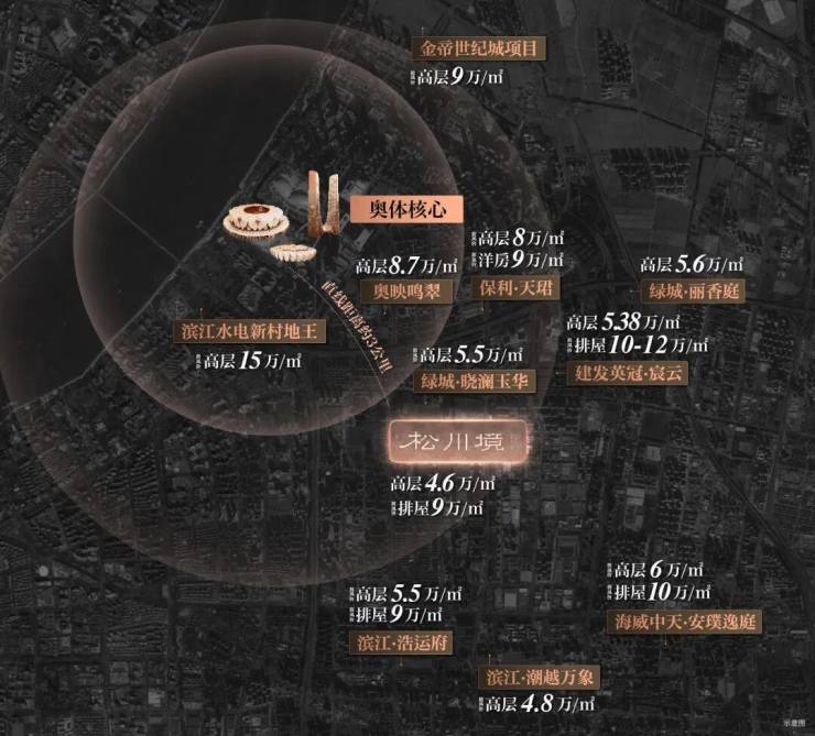 在奥体首座天街(规划)、奥体印象城、SKP(在建)等地标级资源簇拥之下,松川境以约1.8低容积,以「奥体至高规模墅境住区」为名,拔萃于奥体。