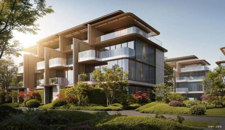 联排立面通过“虚实对比”,实体墙部分采用仿砖涂料,虚体部分为玻璃幕墙,既保证私密性又提升通透感。联排产品采用“双坡屋顶+金属格栅”设计,屋顶坡度模拟江南传统民居,格栅则过滤强光,形成斑驳的光影效果。