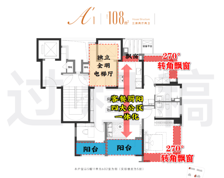 建面约94㎡三房两厅两卫:均价约 5.6 万 /㎡,总价约 517-550 万;经典飞机户型,南北通透,全屋飘窗,270° 观景阳台,刚需首选