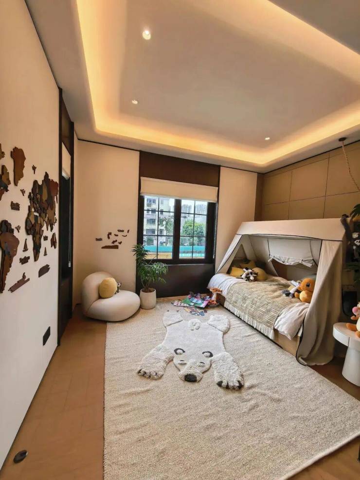 两层设计:相比传统三层别墅,纯两层设计减少了楼梯面积,提升了单层空间的面宽和尺度感,对老人和小孩更友好,实用性高。